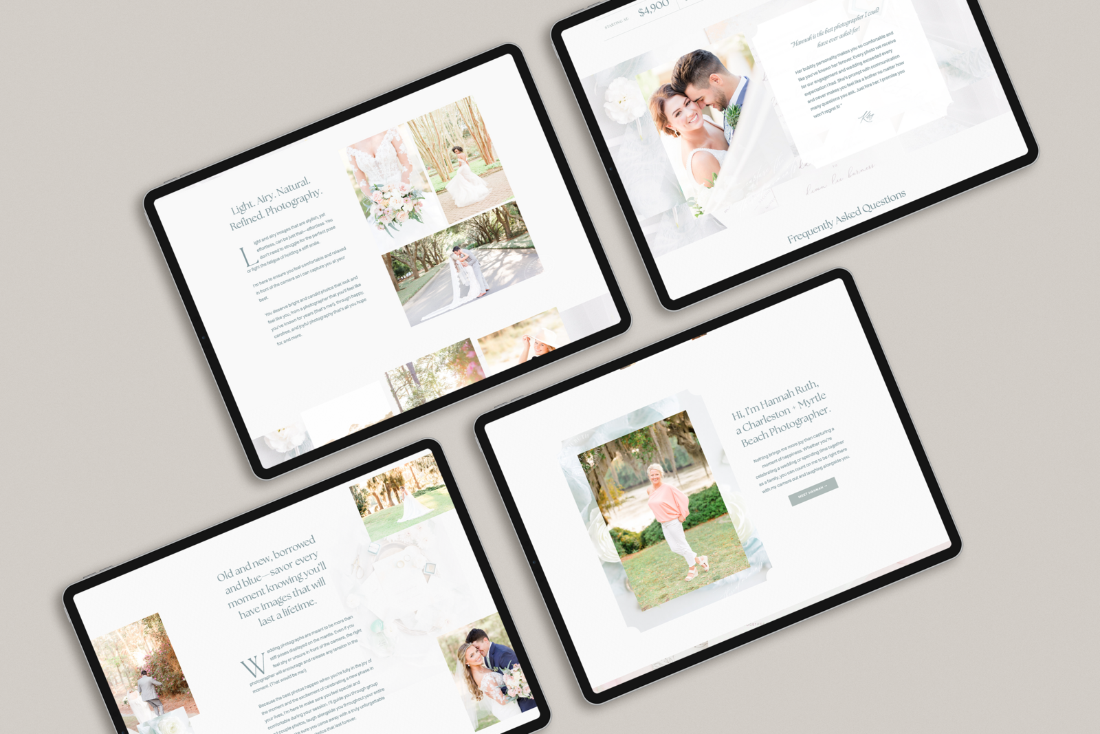 Hannah is a South Carolina-based photographer specializing in weddings, families and seniors. Hannah came to me and knowing that she had a lot of experience in the photography world, but she needed a brand and website that reflected that experience. For her brand and website, we brought in her coastal roots, and gave it an overall light and airy feel, to compliment her photography style.