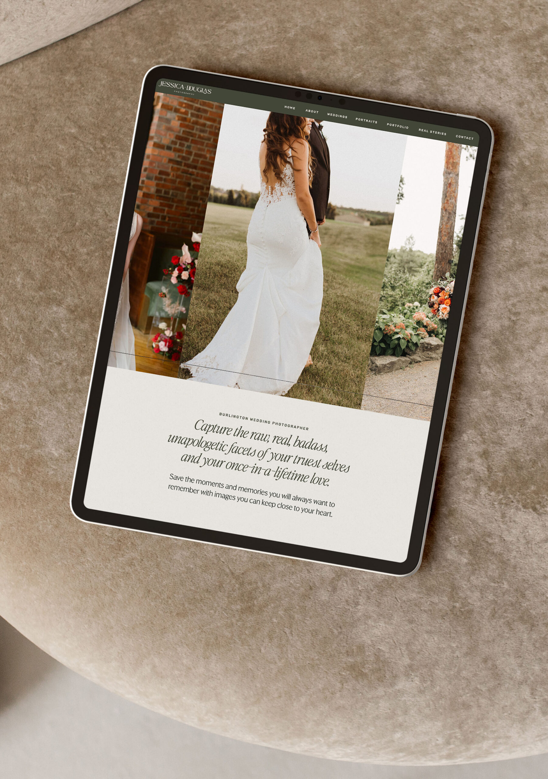 Jessica Douglas is an Ontario-based wedding and family photographer whose work is rooted in authenticity and storytelling. She wanted a brand and website that felt as welcoming and down-to-earth as she is while still showcasing her years of experience and professional growth. Through a custom brand identity and website design, we created an elevated yet approachable online presence that reflects her artistry and passion.