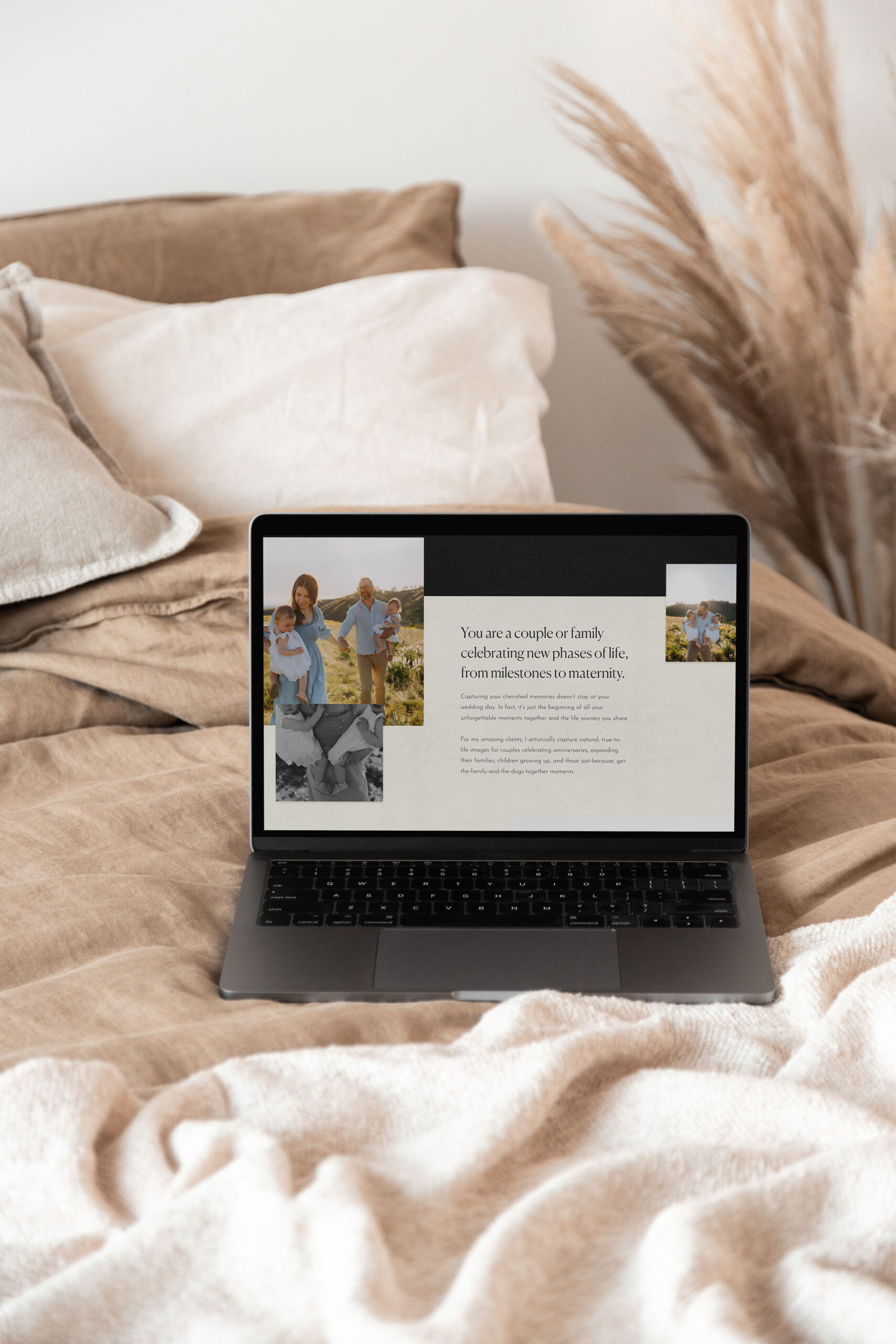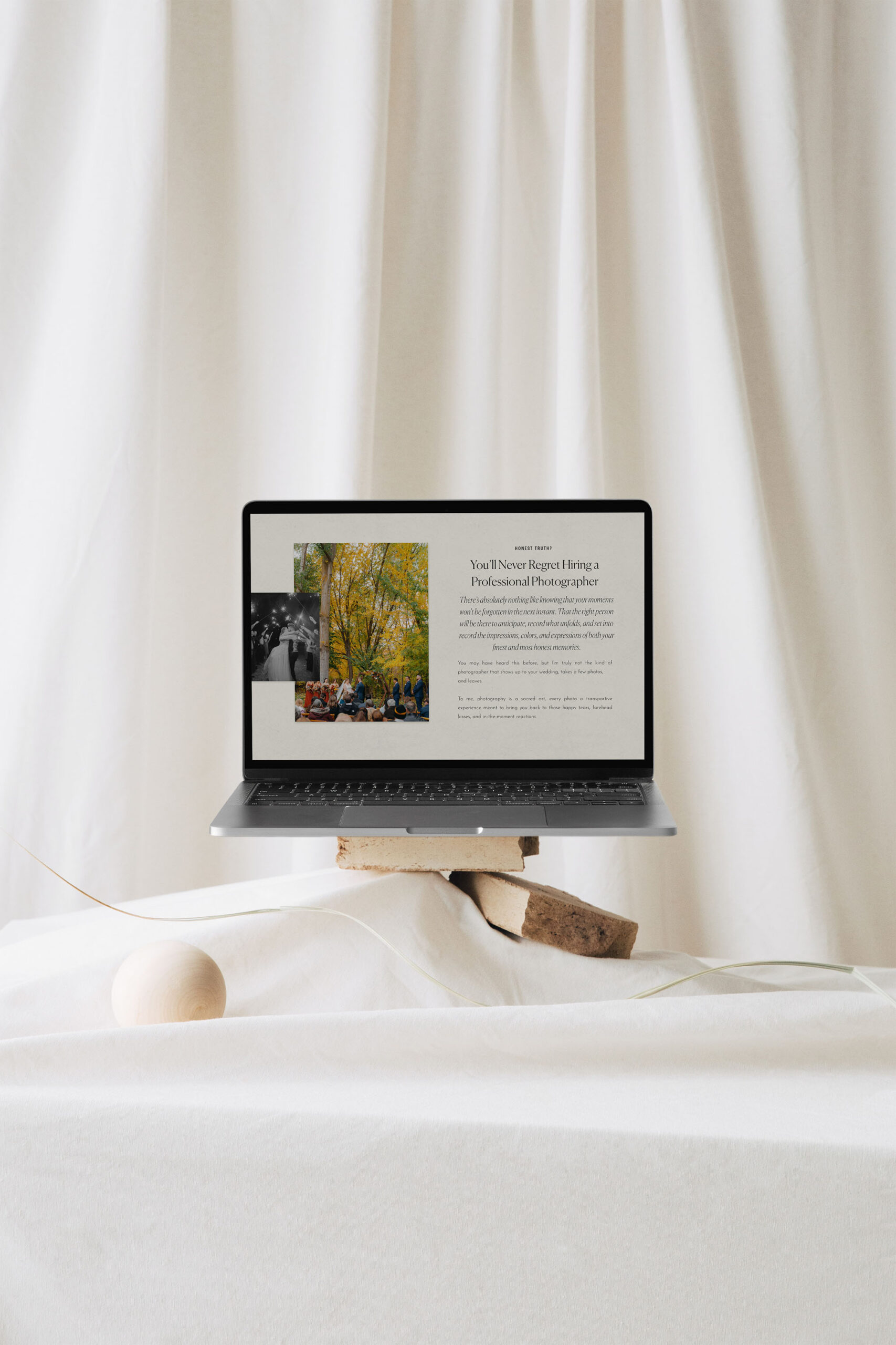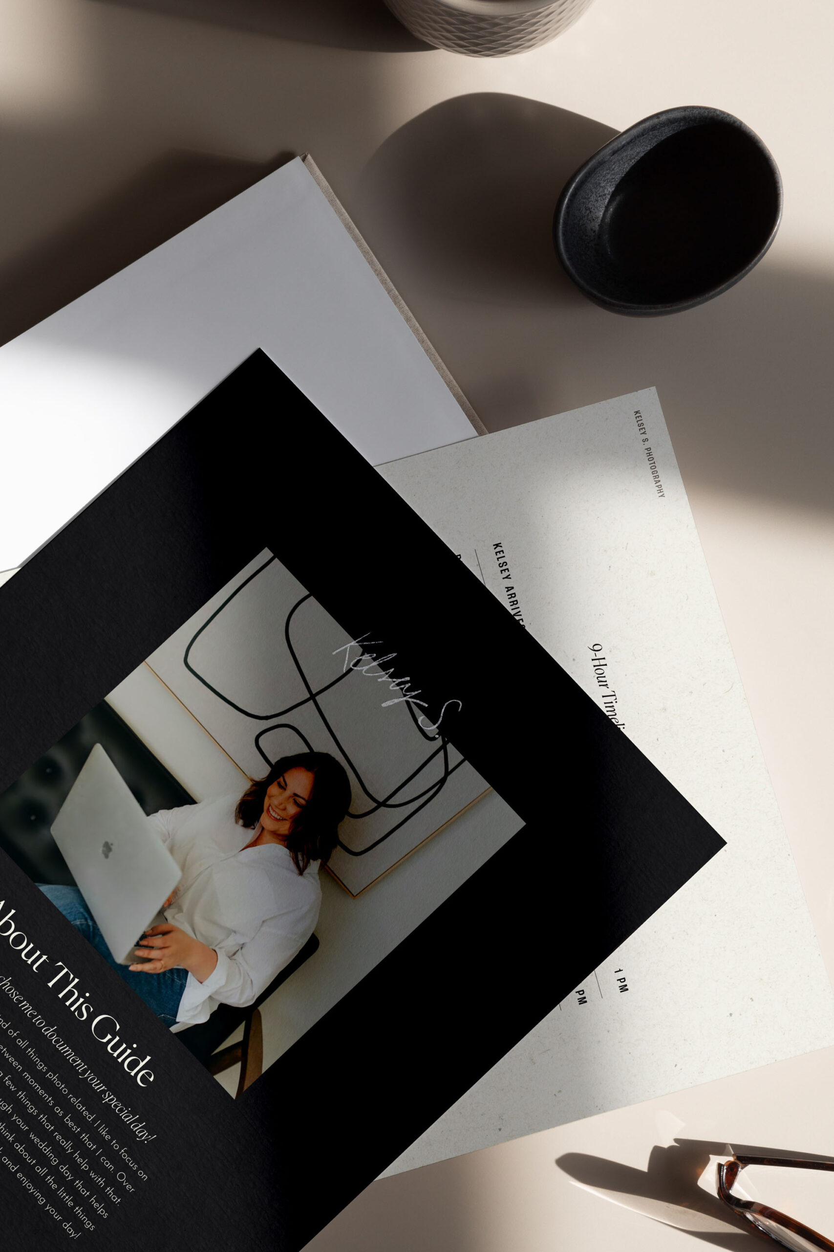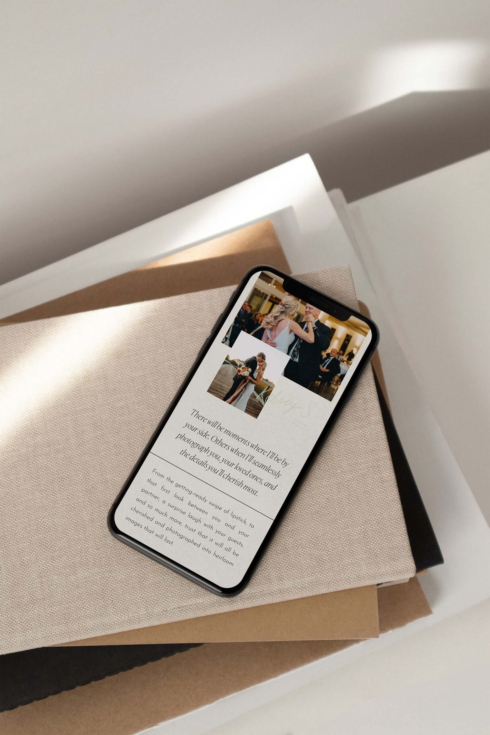 Beyond the website, we designed custom investment guides to help streamline her booking process. These guides allow potential clients to easily understand her offerings while reinforcing the elevated, professional feel of her brand. Every touchpoint now feels cohesive, from first inquiry to final photo delivery.